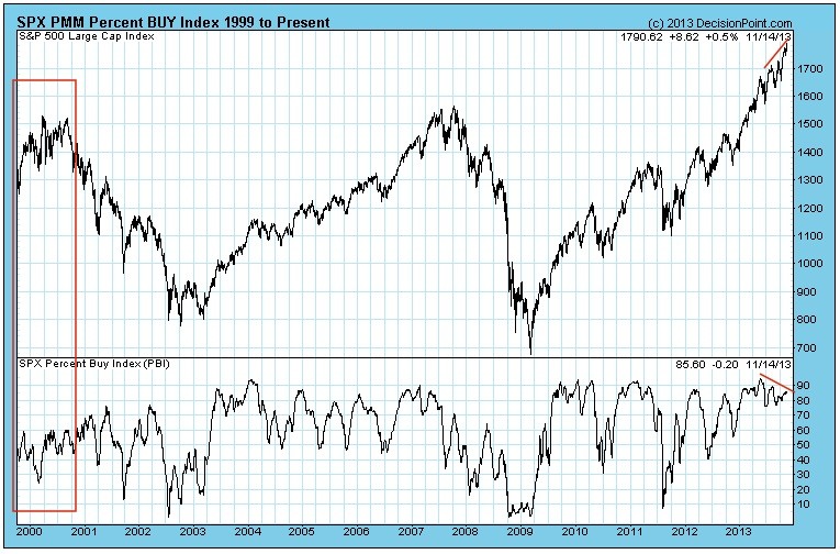 The period when the 2000 bull market top was being put in shows how seriously out of balance the PBI can get. What happened was that market participants had narrowed their focus to primarily large-cap stocks, and they were the reason that the broad market indexes were held aloft.