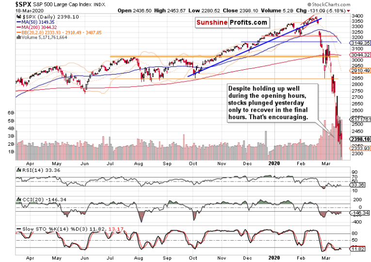 It’s true that Stochastics’ buy signal has been invalidated yesterday as prices slid below 2280. But we’ve seen another overnight rally above 2400. And at the moment of writing these words, stock futures are trading at around 2370. We also also count on intraday volatility approximately in line with yesterday’s figures. One more thing though before summarizing.