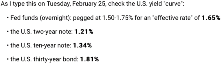 It was just eight (long) days ago that we explained for you WHY a fed funds rate cut was imminent. When that previous post was written, the yield curve in the U.S. looked like this: