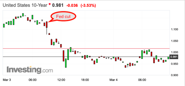 And check the post-cut reaction in the yield on the U.S. 10-year note: