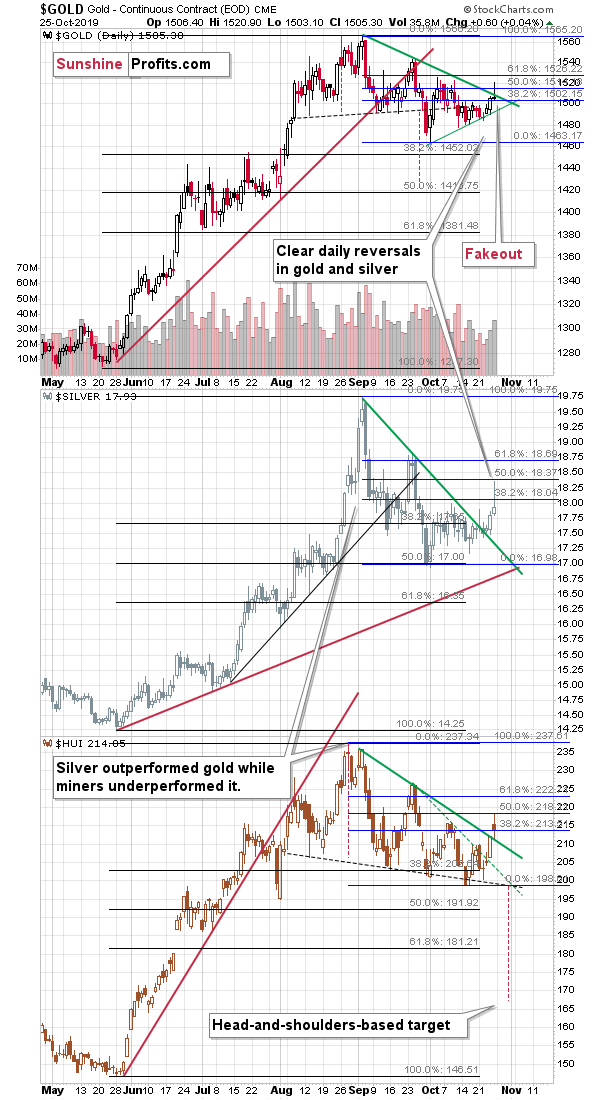 All in all, silver’s daily reversals should do much more than just raise both of one’s eyebrows, especially when they take place in October. They should make investors prepare for much lower silver prices - if not immediately, then relatively shortly. And we have just seen a profound daily silver reversal on Friday.