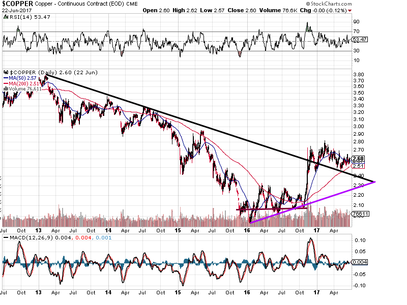 Copper has been in a downtrend for the past five years. If one goes back further, one will see that copper topped around the same time as Gold back in 2011 and has been trending downwards since. However, it has experienced a little renaissance as of late, and it remains to be seen if this trend continues. Copper has attempted to break out many times over the past few years, and each attempt ended in failure. One thing to keep in mind is that the Gold market is finally showing some early signs of life and the move up in copper could be in response to future inflationary forces rather than an economic recovery.