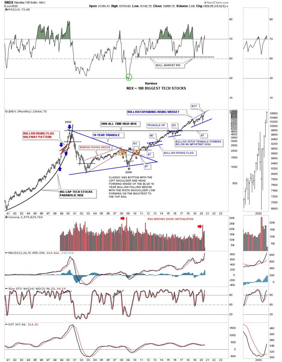Is this long term monthly chart for the NDX showing us just another consolidation pattern in the 2009 secular bull market? As you can see the price action has completed the all important 4th reversal point. Note the capitulation volume at the 2009 crash low and the 2020 crash low.