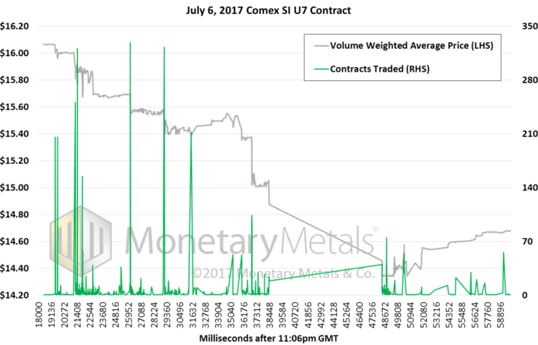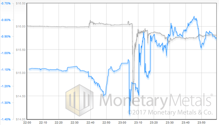 Other than that brief blip up in price from around $15.88 to $16.10, this episode was not about physical metal.