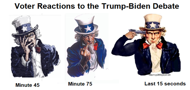 Before I wade into my Q4 strategy analysis, I have to tell you that prior to last Tuesday’s “debate”, I was leaning toward a “neutral” investment strategy largely based upon the 2016 outcome where heavily-favoured Hillary Clinton was upset by the Trump Train at the last hour and in direct opposition to what EVERY poll was predicting. I have a theory about the 2016 election and just exactly WHY the pollsters got it so completely wrong. I will explain.