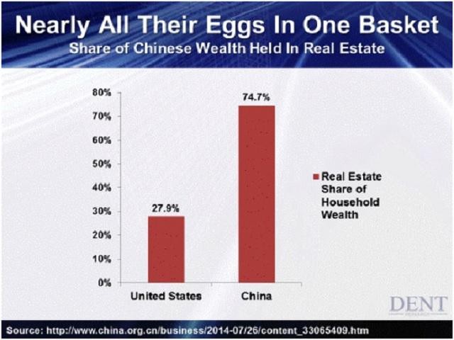 Pretend you’re a country that over the past decade has engineered the mother of all real estate booms, in the process encouraging your citizens to load up on houses, apartments, raw land, anything related to the property sector. Your households now have 74% of their wealth in real estate, versus only 28% for those house-mad Americans. You’re China of course.