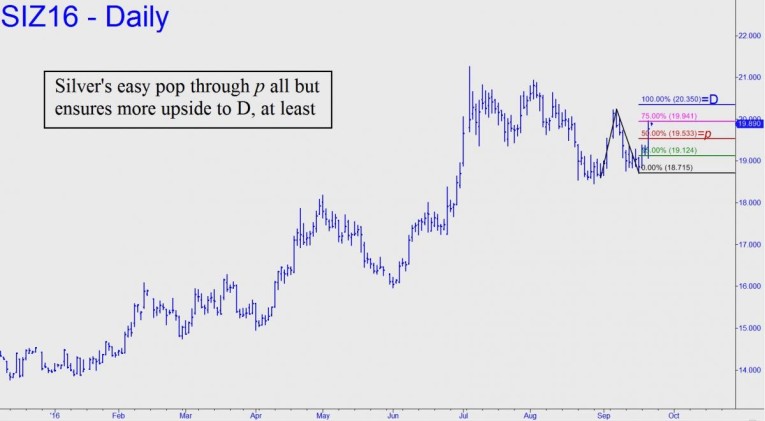 COMEX Silver Price looks bound most immediately for a 20.350 target that lies about 40 cents above today’s settlement price. And if the futures blow past that number with ease, I’d infer that bulls have a shot at 22.460, or even 23.745 before the intermediate-term bullish cycle begun early in June is spent.