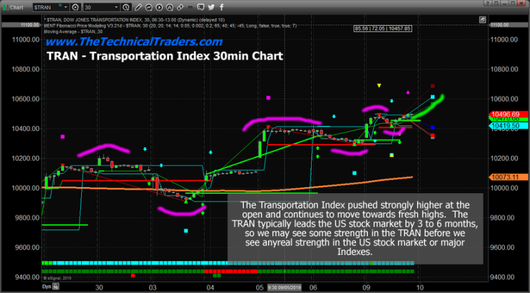 Additionally, the Transportation Index moved higher in a similar structure.  The Transportation Index typically leads the US stock market by 3 to 6 months as an indicator of future price expectations related to the need for trucks, rail, shipping, and other economic-related activities.  More need for shipping/transportation solutions means a more active economy.  A more active economy means more buying and selling of goods, services, and other items.  Thus, if the Transportation Index can break recent high levels and begin a new upside price move, it would be a very clear sign that the US economy is strengthening and that the US major indexes may begin a new upside price move soon.
