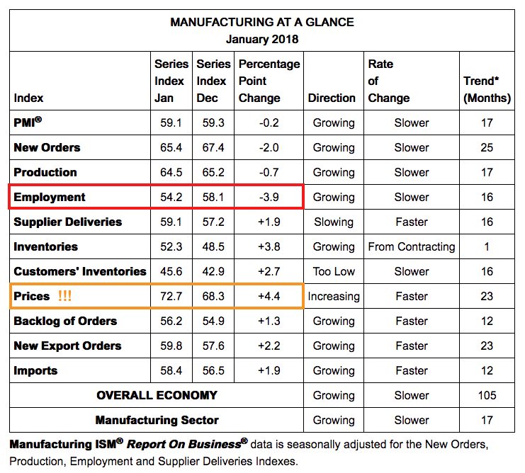 Manufacturing activity was fine in January as New Orders eased a bit and PMI barely budged. However, the ‘inflation effects’ component, prices, lurched higher. At the same time Employment eased more than just a teeny. That is a concern because based on my experience in manufacturing when materials like these start increasing in price, people start having their wages compacted or start getting shown the door.