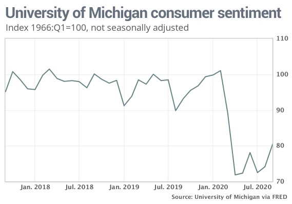 As you read September’s reports, remember they are mostly about what happened in August when the reopening of the economy was still fairly fresh. With no further adieu, as we move into the final weeks of the election season with the White House lights flickering due to plague, let us first consider the twinkling light of consumer sentiment.