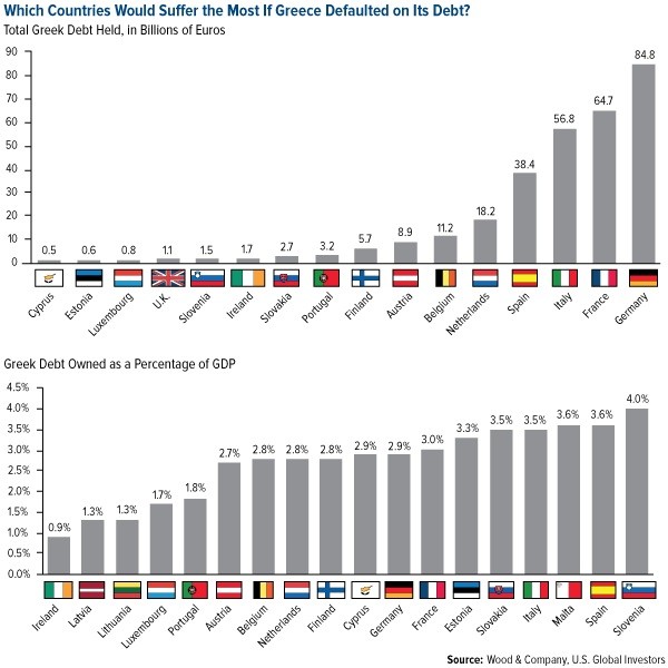 Many global investors are anxious to see how the drama unfolds, as the beleaguered Mediterranean country, strapped for cash, is staring down billions of euros in upcoming bailout loan repayments, not to mention salaries and pensions. On May 12, Greece will owe the International Monetary Fund (IMF) 0.8 billion euros, and between the end of July and beginning of August, 7 billion euros in bond payments become due to the European Central Bank (ECB), according to Wood & Company.