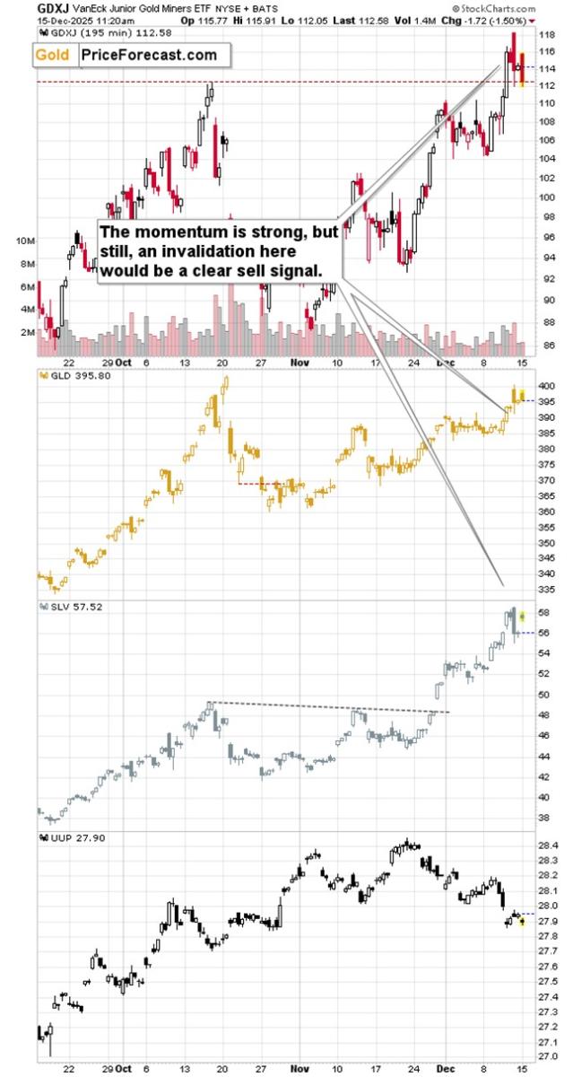 Silver is on the roll, which might protect it for some time (perhaps until the rally burns itself out in the short term based on the targets discussed previously), but the rest of the sector is very vulnerable – and likely to decline without additional significant rallies. Our positions reflect that.