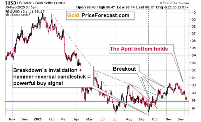 But it’s not USD’s performance itself that is most important – it’s the way miners and silver react to it.