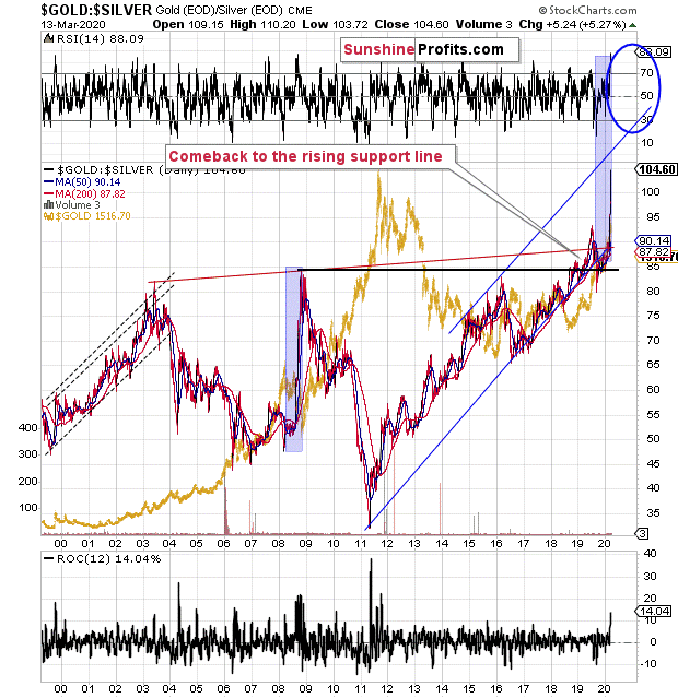 Remember the time, when the gold to silver ratio moved to 80 and practically everyone (well, we didn’t) told you to buy silver? We told you that the real long-term resistance was at the 100 level, and that the gold to silver ratio broke above the previous highs, it was likely to shoot up. That’s exactly what happened.