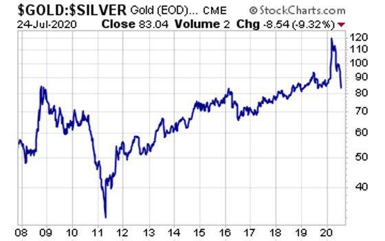 The gold-only bugs felt vindicated in March when the gold:silver ratio shot up to over 120:1. But as we argued at the time, the unprecedented cheapness of silver versus gold represented a once in a lifetime opportunity to buy silver.