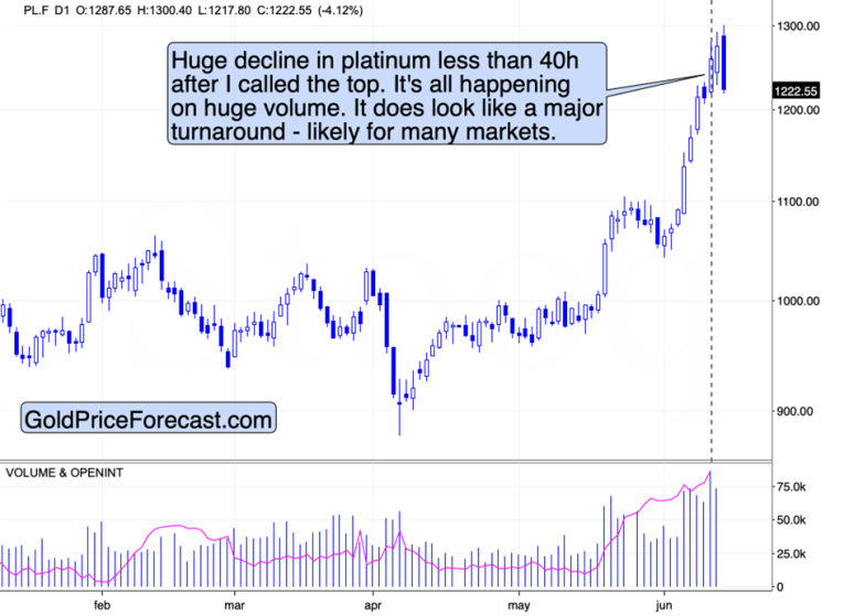 Meanwhile, platinum appears to have topped, just as I had indicated less than 48 hours ago.