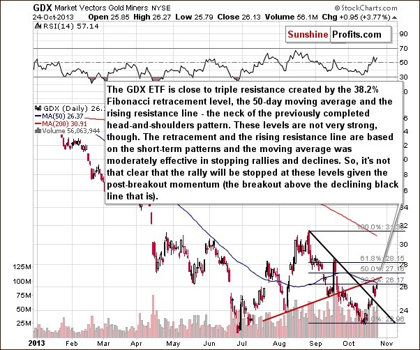 Can we see a confirmation of the above in the chart featuring mining stocks? Let's have a look at the whole senior mining stocks sector with Market Vectors Gold Miners ETF as a proxy.