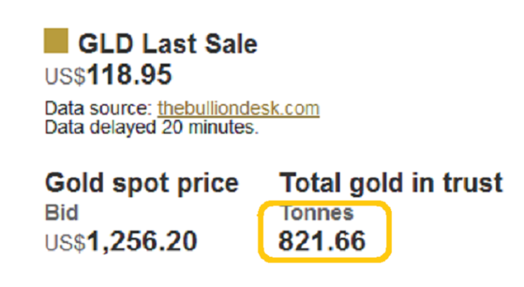 That’s a snapshot of the SPDR fund tonnage. Solid buying has boosted the holdings to more than 820 tons.