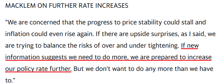 While the crowd assumes the inflation battle has already been won, these same folks thought a pause meant the BoC’s rate-hike cycle was over. Although, with Fed officials still immensely hawkish and demand proving resilient, BoC Governor Tiff Macklem (Canada’s Jerome Powell) said on Jul. 12: