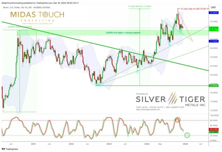 Silver in US-Dollar, weekly chart as of December 16th, 2024. Source: Tradingview
