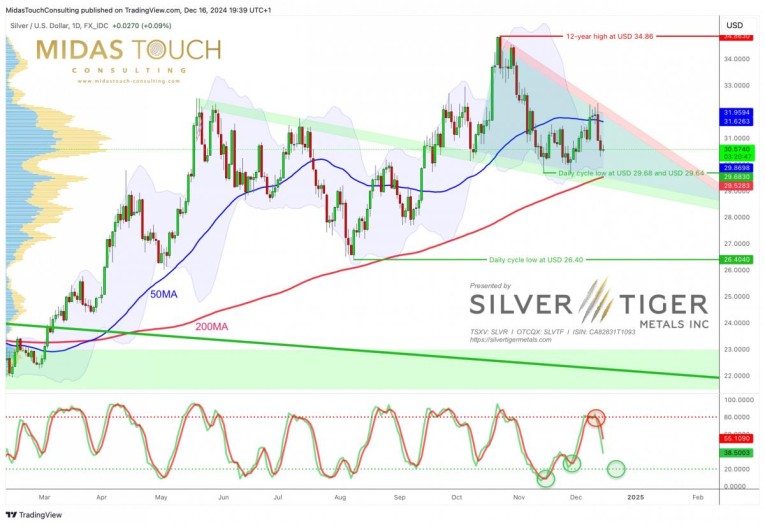 Silver in US-Dollar, daily chart as of December 16th, 2024. Source: Tradingview