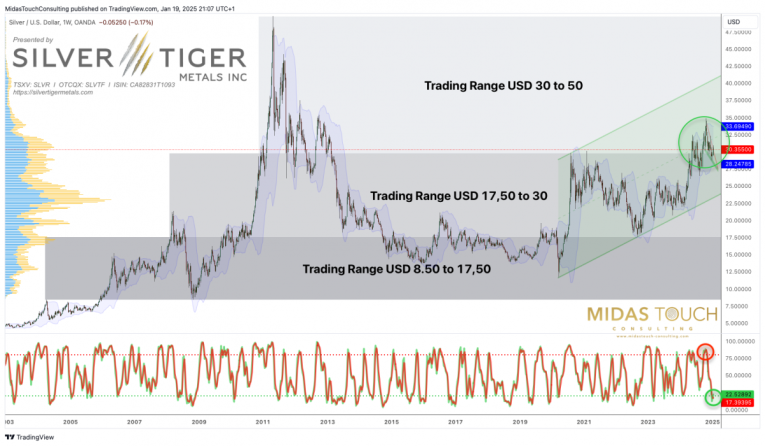 Silver in US-Dollar, weekly chart as of January 19th, 2025. Source: Tradingview