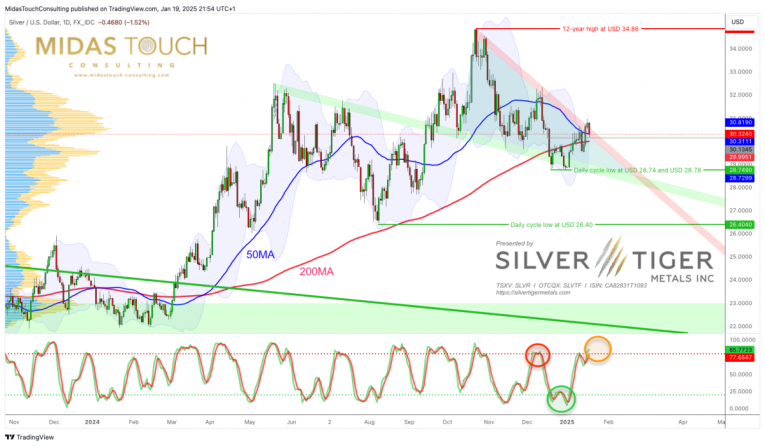 However, investors should remain vigilant of potential risks, including economic uncertainties and geopolitical tensions that could impact the precious metals market. A move below the recent double low at USD 28.75 would necessitate a reassessment of the bullish outlook. Nevertheless, with strong demand from emerging markets, particularly India and China, coupled with silver’s critical role in green technologies, the metal appears well-positioned for growth in 2025. As always, prudent investment strategies should account for both the opportunities and challenges presented by this dynamic but small market.