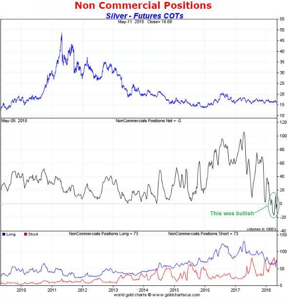 Silver Futures COTs, Non Commercial Positions 2009-2018