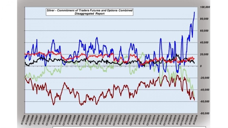 As long as the assumption that Central Banks are going to keep the liquidity spigots wide open indefinitely remains the general consensus, there does not seem to be anything that might upset this relentless chasing of risk assets. That is all fine and dandy – what bothers me however is I know full well how fickle this hot money can be. It can shift faster than Donald Trump or Hillary Clinton can change a position on an issue. Because of its very nature, it is impatient. If upward momentum stalls all the while the market grows increasingly lopsided, as silver is currently doing, all it takes to send this money packing is the breaching of a downside chart support level. That is when anyone who is carelessly indifferent can get seriously hurt.