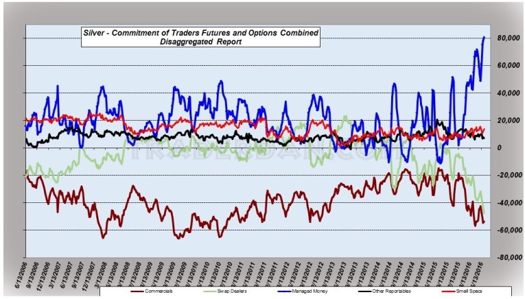 As you can see the Battle Royale between the titans of the Silver pit, aka, the Hedge funds versus the Swap Dealers and Commercials) continues unabated.