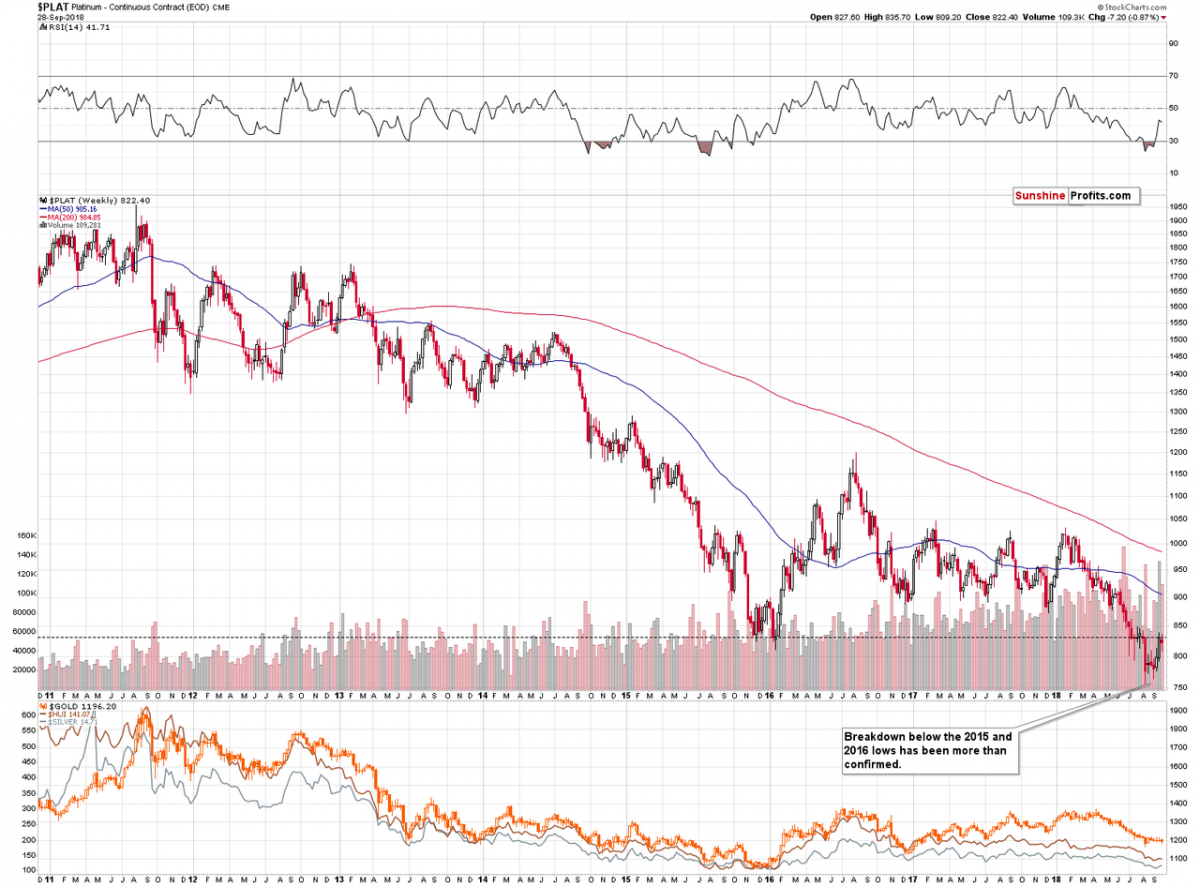 Summing up, it seems that the next big downswing in the precious metals sector is already underway. We saw the repeat of short-term outperformance, which is a bearish sign on its own, and it’s particularly bearish because of the analogy to what happened in 2013 right before the big price slide.