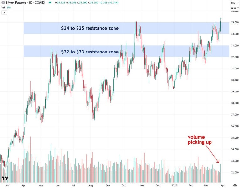 To sum it up, things are really looking up for silver following COMEX silver futures’ breakout above the key $34–$35 resistance zone.