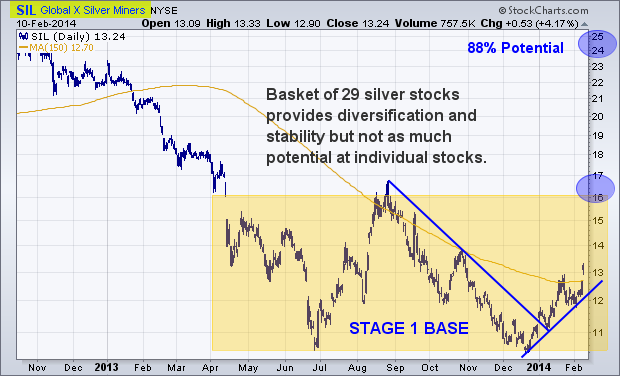 The SIL silver miners ETF holds a basket of silver stocks which vary in size. This is a great way to get the best of both worlds in terms of owning all sizes of silver stocks within one investment.