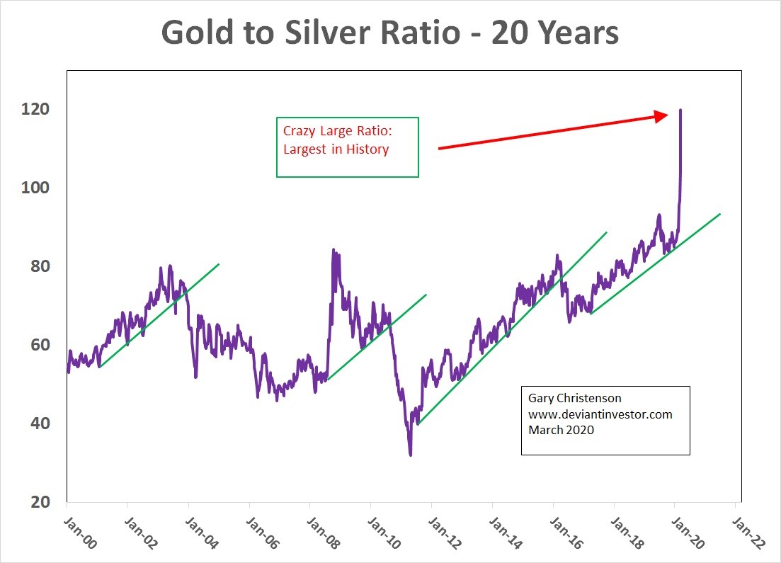 - Silver is inexpensive compared to gold in early 2020. Investors, including the paper “managers” on COMEX, are worried and hedged with gold. Industrial demand for silver could fall during a recession, so silver prices are weaker than gold in early 2020.