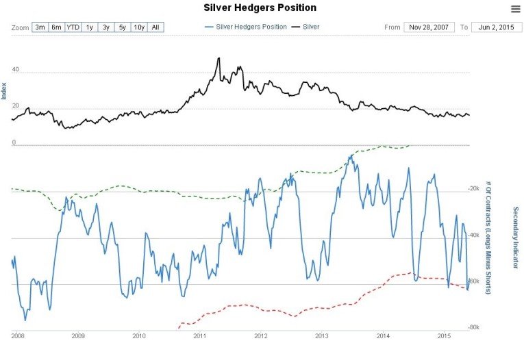The silver hedgers chart, a form of COT chart going back much further, is likewise bearish, and points to another downleg…