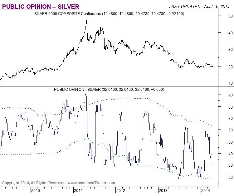 Public opinion on silver is still in middling ground, which in itself is neither bullish no bearish.