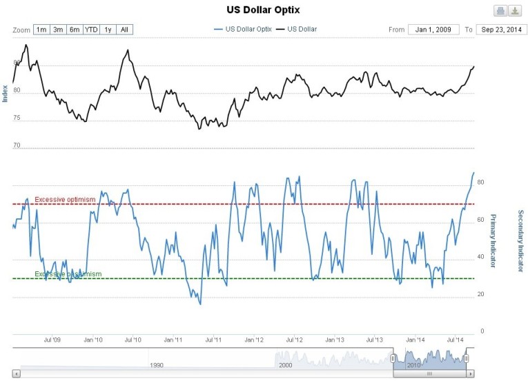 The whole world is optimistic on the dollar now, probably up to and including IS, which is understandable considering how many greenbacks they have robbed from banks, and sentiment towards it is at wild “off the scale” bullish extremes. For this reason, a correction in the dollar looks imminent, even if it later continues higher for a while, and if it is gold and silver should turn higher. Let’s now review the evidence.