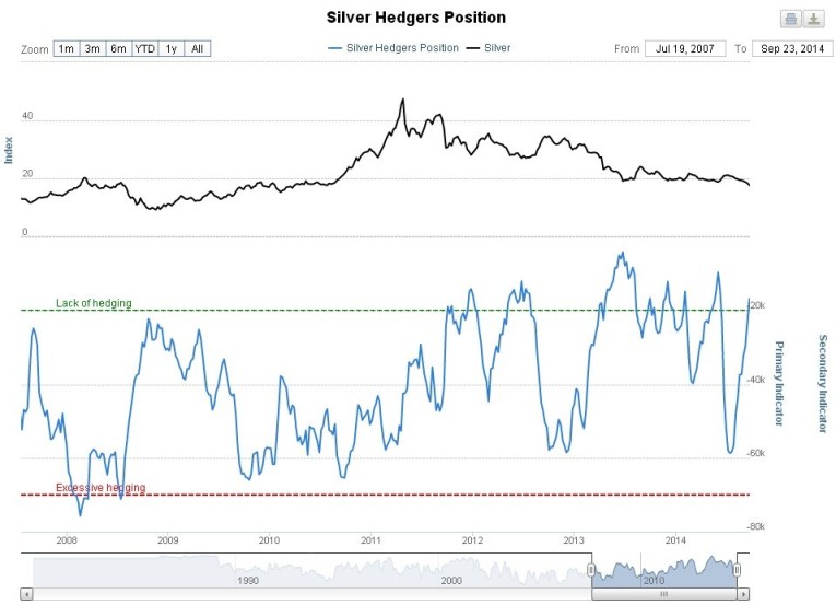 The silver hedgers chart (which is a form of COT chart that goes back further), shows that readings are now rapidly swinging into bullish territory.