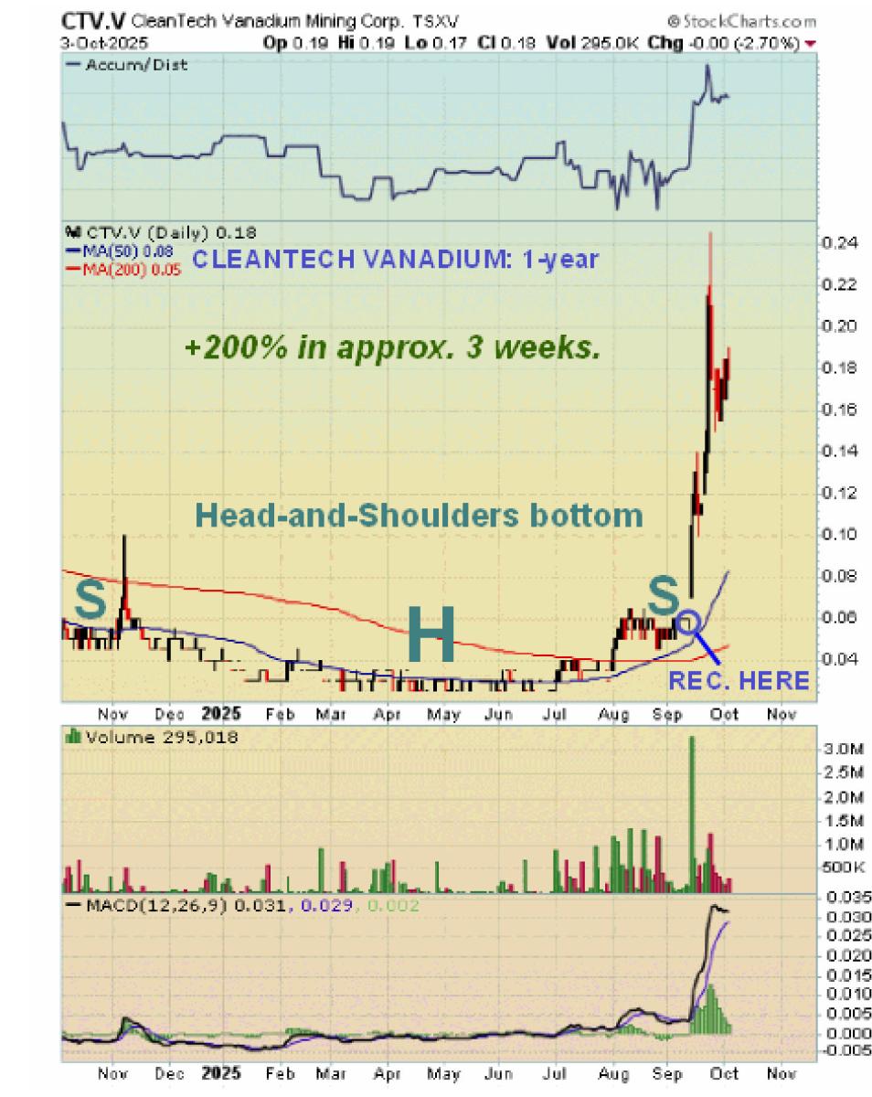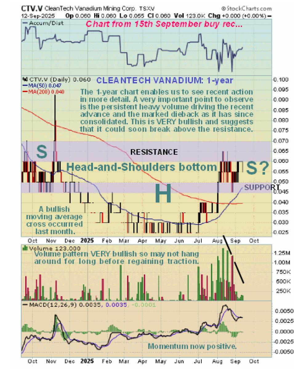 Bought CleanTech Vanadium on 15th September, recommended at C$0.06, gapped to C$0.07 at open…