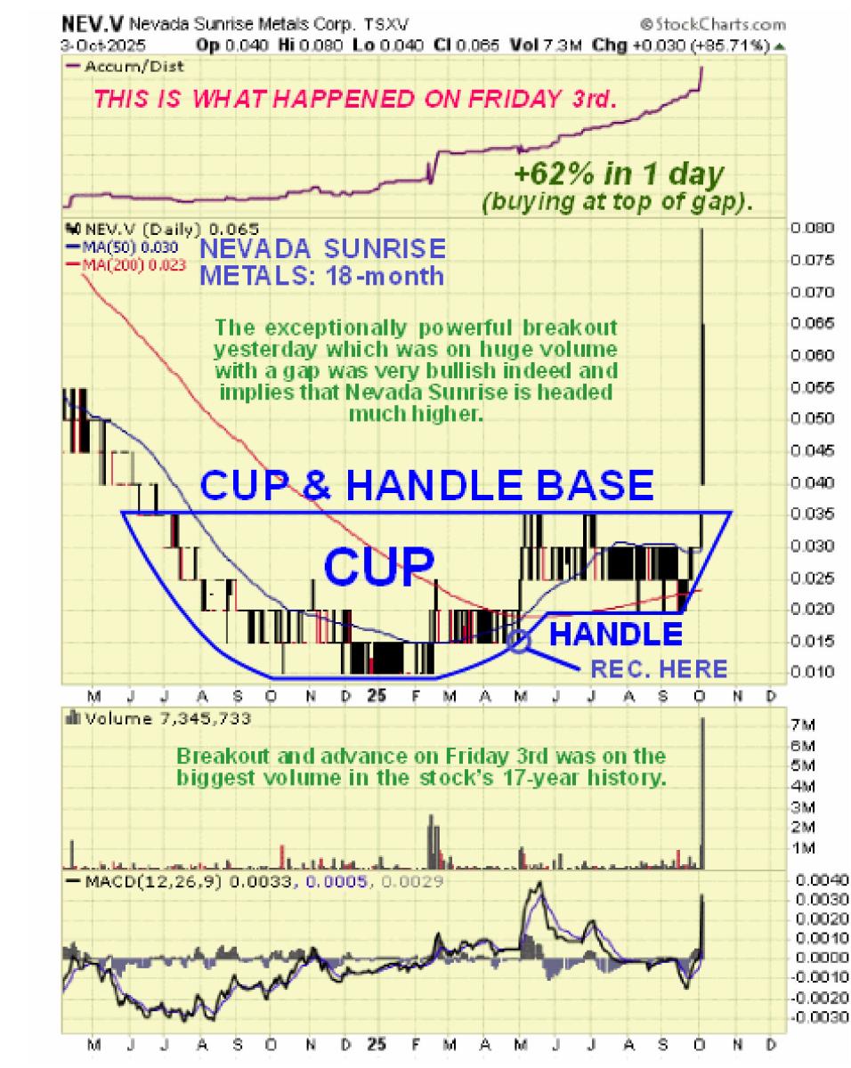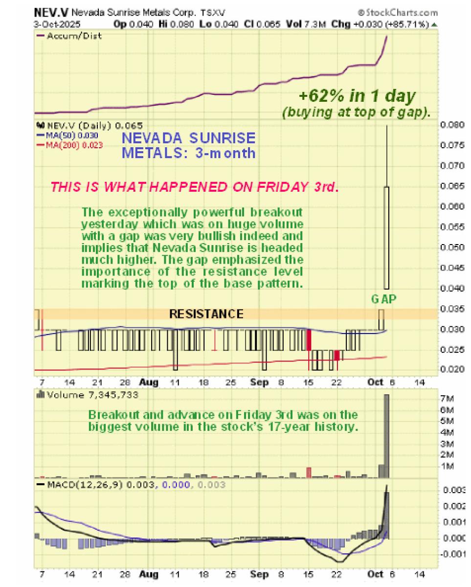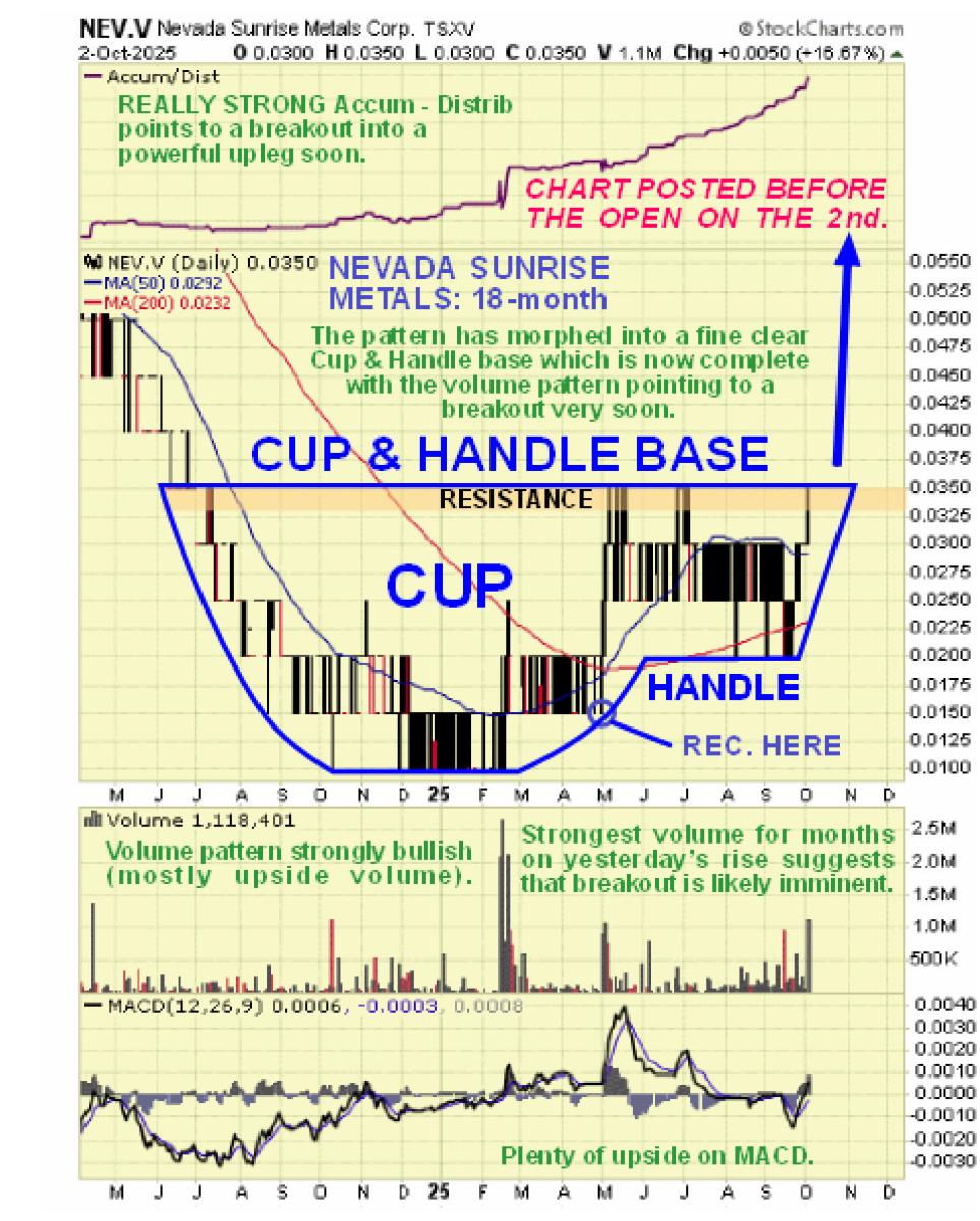 Bought Nevada Metals (again) on 3rd October (last Friday), recommended at C$0.035, gapped to C$0.04 at open.