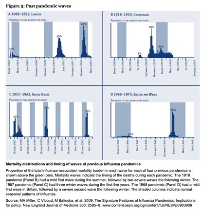 If we take the Ray Dalio principle, “Wherein history has this happened before?”. Many times, we have to go back in time where the current generation experiencing a difficult event wasn’t even alive when the past event occurred or was too young to be aware of it. What historical examples can we look at, to see what has happened during past pandemic waves? The Government of New Zealand in their pandemic preparation has put together an analysis of four major pandemics going back more than 130 years.