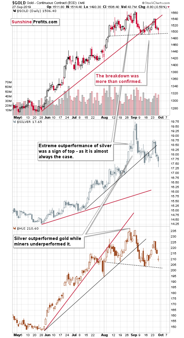 Yes, it is one. In the previous weeks we’ve been featuring multiple factors that are likely to result in lower gold, silver, and mining stock values in the following months. The very recent downswing is likely only the beginning of what’s to come. There are even more signals pointing in this direction, though.