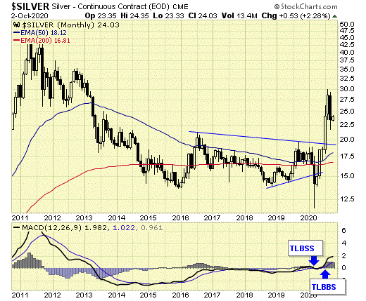Silver remains on a major BUY signal at the end of September.