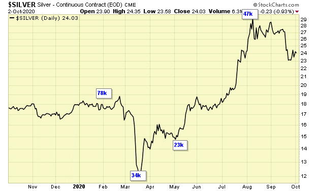 COT data favors overall lower silver prices.