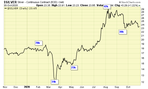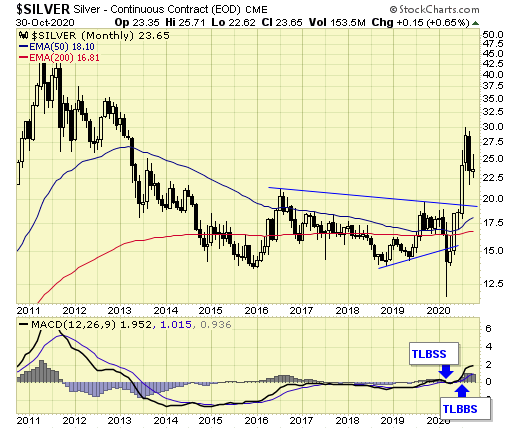 Silver remains on a major BUY signal at the end of October.