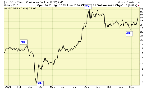 Silver began under performing in 2011, and that down trend ended this year.