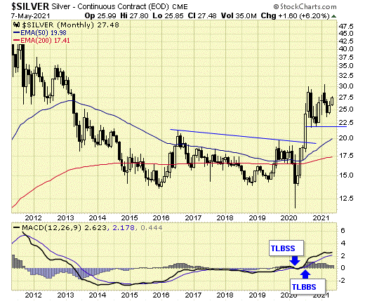 Silver remains on a major BUY signal at the end of April.