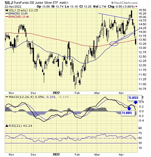 Silver is on a long term SELL signal, but prices have found support at the 50ema.