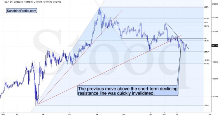 What’s profitable is rarely the thing that feels good initially. As silver often moves in close relation to the yellow metal, forecasting gold’s rally without a bigger decline first is thus likely to be misleading. Silver is likely to slide as well. The times when gold is continuously trading well above the 2011 highs will come, but they are unlikely to be seen without being preceded by a sharp drop first.