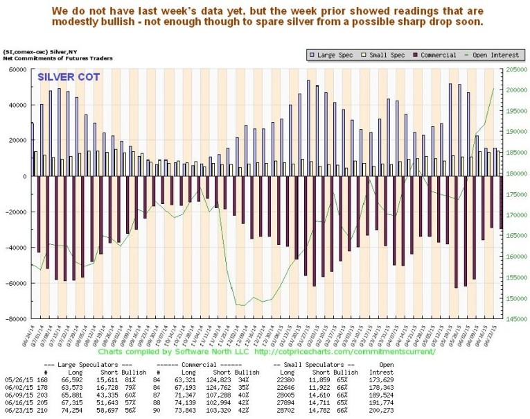 The Silver Hedger’s chart is in middling ground and doesn’t give us much of a clue about direction, one way or the other.